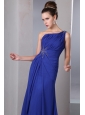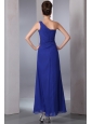 Blue Empire One Shoulder Beading Prom Dress Ankle-length Chiffon