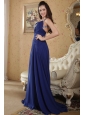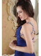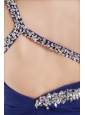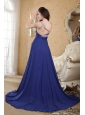 Blue Empire One Shoulder Prom Dress Chiffon Beading  Brush Train