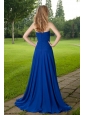 Blue Empire Sweetheart Brush Train Chiffon Ruch Prom Dress