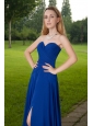 This gown is simply gorgeous!This romantic blue dress dropped naturallly and characterd with a sweetheart neckline in the front that you will looks sexy yet decent when you wear it.Pleated bodice modifites your charming figure.The slit skirt creates a beautiful shape to complete the dress.The You will be the shinning star when you go out in it.