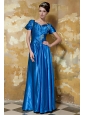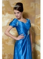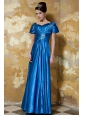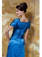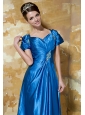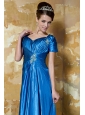 Blue Empire Sweetheart Short Sleeves Floor-length Elastic Woven Satin Beading Mother Of The Bride Dress