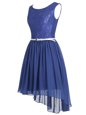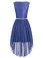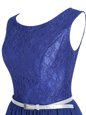 Blue Homecoming Dress Prom and Party and For with Lace and Belt Scoop Sleeveless Side Zipper