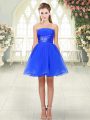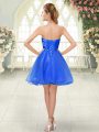 Blue Lace Up Prom Evening Gown Beading Sleeveless Mini Length