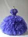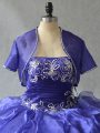Blue Lace Up Strapless Beading and Ruffles 15th Birthday Dress Organza Sleeveless