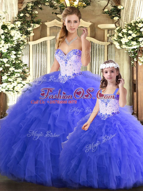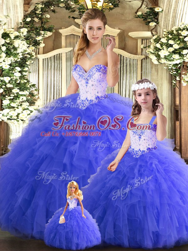 Blue Lace Up Sweet 16 Dresses Beading and Ruffles Sleeveless Floor Length