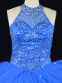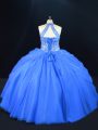 Blue Lace Up Sweet 16 Dresses Beading Sleeveless Floor Length