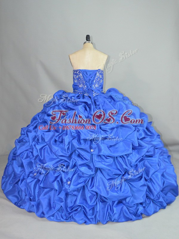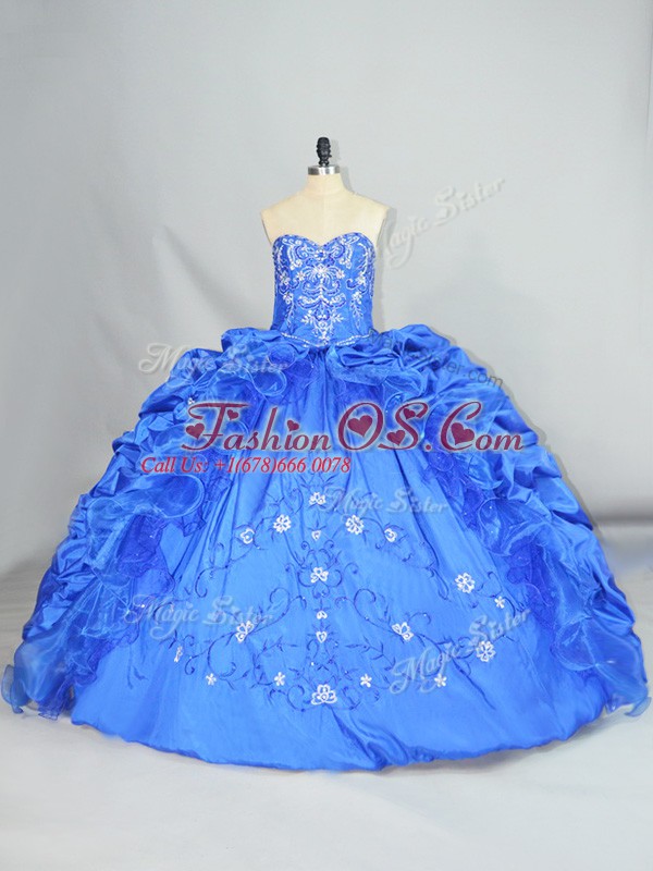Home >  Quinceanera Dresses >  Quinceanera Dresses 2019 > Blue Lace Up Sweetheart Embroidery and Pick Ups Sweet 16 Quinceanera Dress Taffeta Sleeveless
