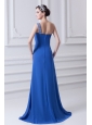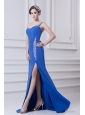 Blue One Shoulder Column Prom Dress with Beading and High Slit