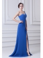 Home >  Prom Dresses >  Beautiful Prom Dresses > Blue One Shoulder Column Prom Dress with Beading and High Slit
