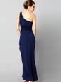Home >  Evening Dresses > Blue One Shoulder Neckline Beading and Ruching Evening Wear Sleeveless Side Zipper