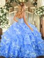 Blue Organza Lace Up Sweetheart Sleeveless Floor Length Sweet 16 Dresses Beading and Ruffled Layers