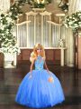 Blue Quince Ball Gowns Sweet 16 and Quinceanera with Embroidery Halter Top Sleeveless Lace Up