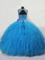 Blue Quinceanera Dresses Sweet 16 and Quinceanera with Beading and Ruffles Straps Sleeveless Lace Up