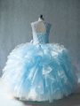 Home >  Quinceanera Dresses >  Perfect Quinceanera Dresses > Blue Scoop Neckline Beading and Ruffles Quinceanera Gown Sleeveless Lace Up