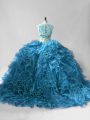 Blue Scoop Neckline Beading and Ruffles Vestidos de Quinceanera Sleeveless Zipper