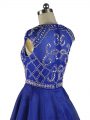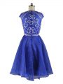 Blue Scoop Zipper Beading Cocktail Dress Cap Sleeves