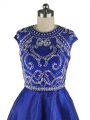 Home >  Special Occasion Dresses >  Cocktail Dresses > Blue Scoop Zipper Beading Cocktail Dress Cap Sleeves