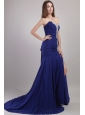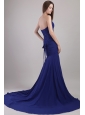 Home >  Prom Dresses >  Cheap Prom Dresses > Blue Sheath / Column Sweetheart Chapel Train Chiffon Appliques Prom Dress