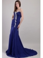 Blue Sheath / Column Sweetheart Chapel Train Chiffon Appliques Prom Dress