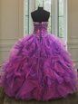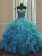 Blue Sleeveless Beading and Ruffles Floor Length Quinceanera Dress