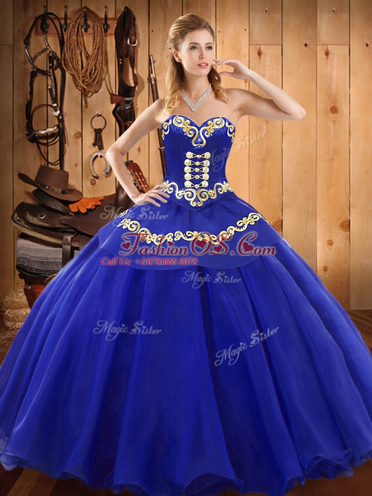 Blue Sleeveless Embroidery Floor Length 15th Birthday Dress