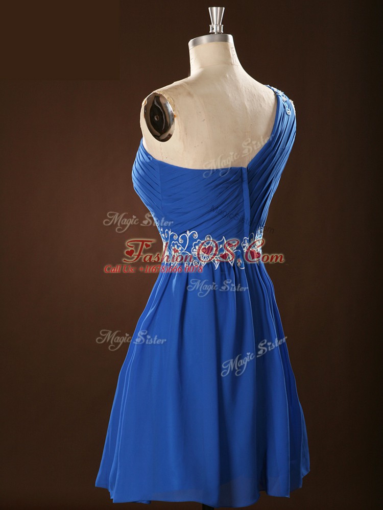 Blue Sleeveless Mini Length Appliques and Ruching Zipper Quinceanera Court Dresses