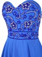 Blue Sleeveless Mini Length Beading Zipper Prom Dress
