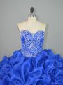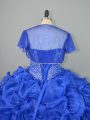 Blue Sleeveless Organza and Elastic Woven Satin Brush Train Lace Up 15 Quinceanera Dress for Sweet 16 and Quinceanera