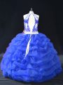 Blue Sleeveless Organza Backless 15 Quinceanera Dress for Sweet 16 and Quinceanera