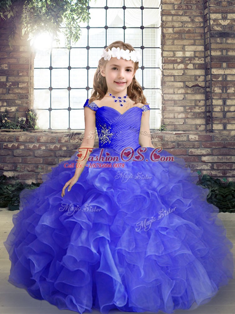 Home >  Special Occasion Dresses >  Beautiful Kids Pageant Dresses > Blue Sleeveless Organza Lace Up Evening Gowns for Party and Wedding Party
