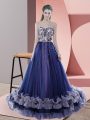 Home >  Prom Dresses >  Sexy Prom Dresses > Blue Sleeveless Sweep Train Beading