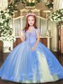 Blue Straps Lace Up Beading Little Girl Pageant Dress Sleeveless