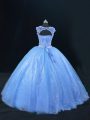 Blue Sweet 16 Dress Tulle and Sequined Sleeveless Beading