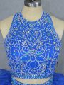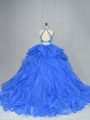 Blue Sweet 16 Dresses Halter Top Sleeveless Court Train Backless