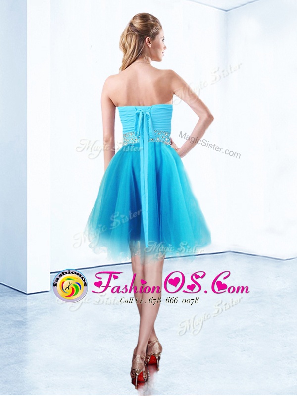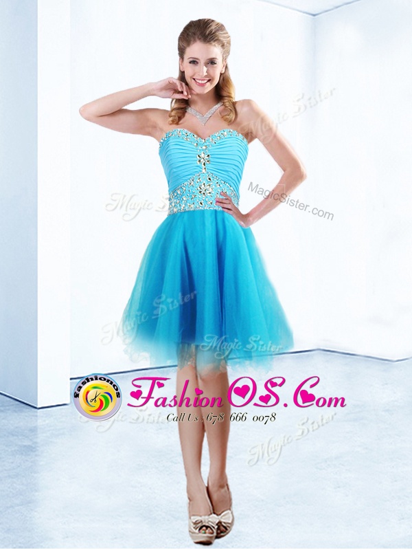 Blue Sweetheart Neckline Beading and Ruching Prom Party Dress Sleeveless Lace Up