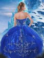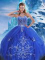 Home >  Quinceanera Dresses >  Fashionable Quinceanera Dresses > Blue Tulle Lace Up Sweetheart Sleeveless Floor Length Quinceanera Dresses Beading and Appliques