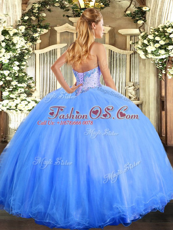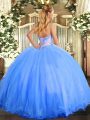 Blue Tulle Lace Up Sweetheart Sleeveless Floor Length Quinceanera Gown Beading