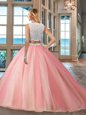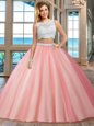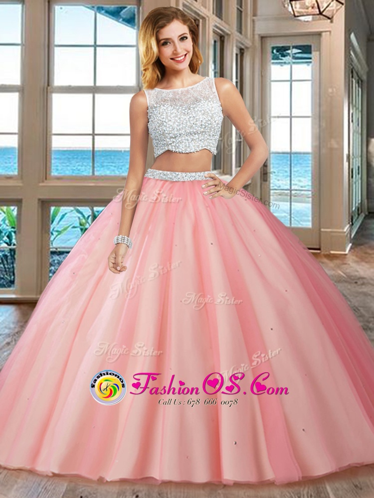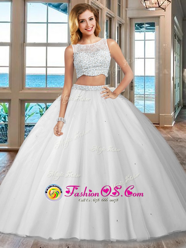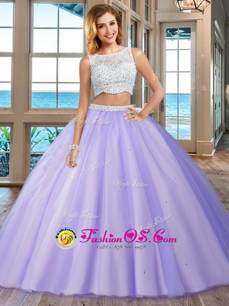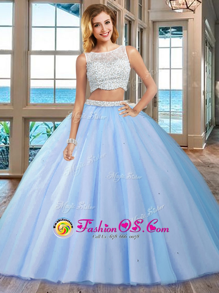 Blue Two Pieces Tulle Bateau Sleeveless Beading Floor Length Side Zipper 15th Birthday Dress