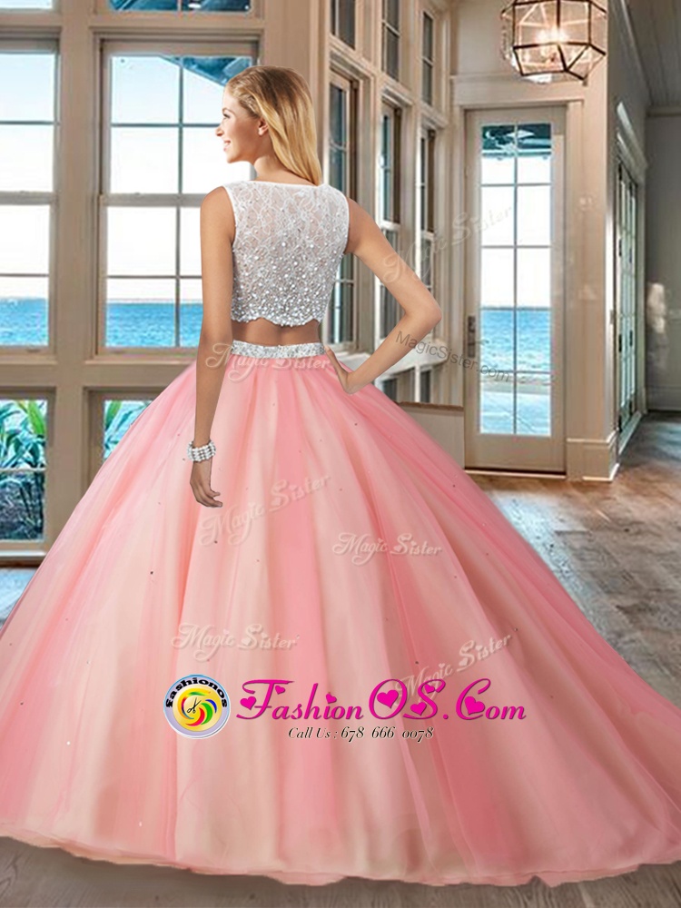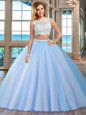 Home >  Quinceanera Dresses >  Fast Delivery Quinceanera Dresses > Blue Two Pieces Tulle Bateau Sleeveless Beading Floor Length Side Zipper 15th Birthday Dress
