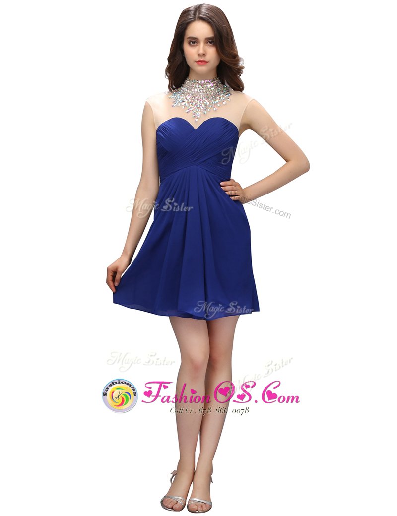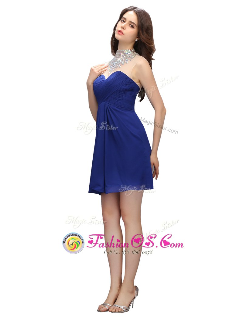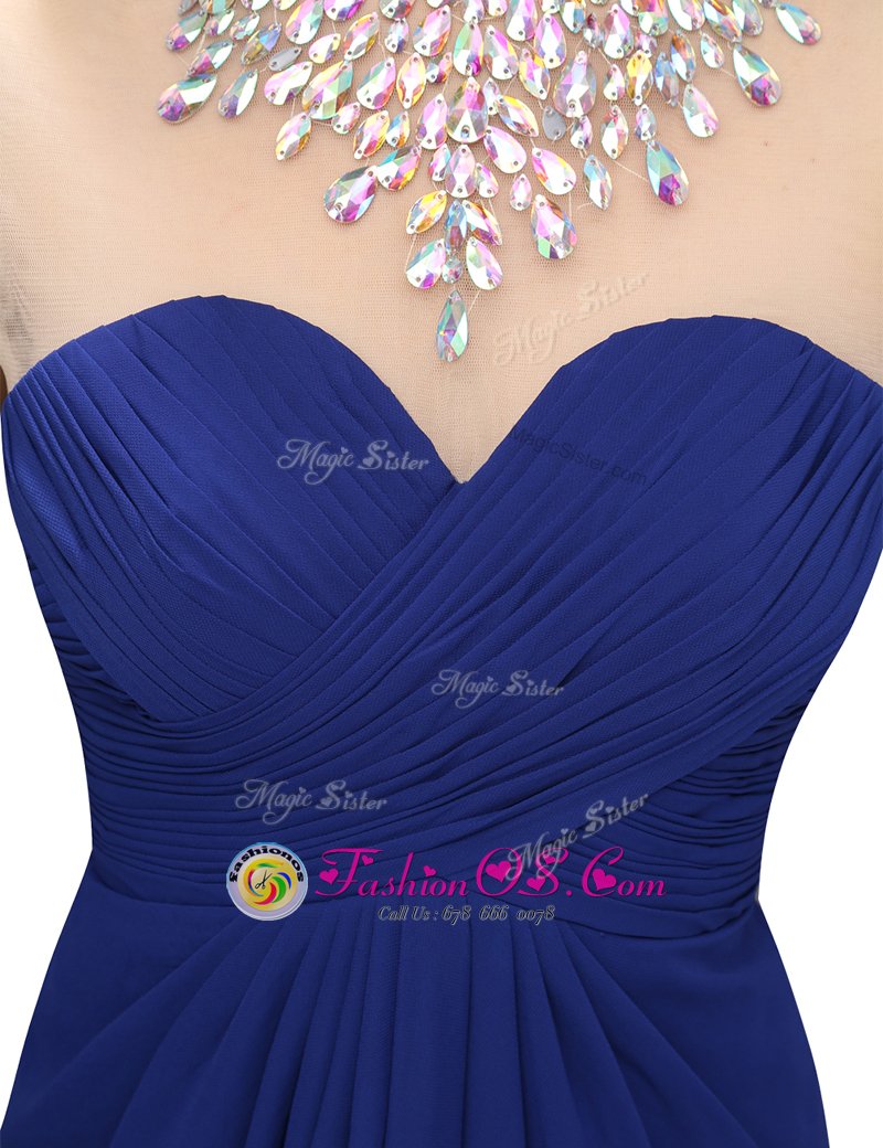 Home >  Prom Dresses >  Perfect Prom Dresses > Blue Zipper Sweetheart Ruching Chiffon Sleeveless