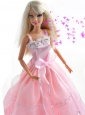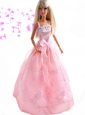Bowknot Embroidery Princess Pink Quinceanera Doll Dress