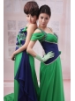 Home >  Prom Dresses >  Cheap Prom Dresses > Bowknot Empire Strapless and Straps Chiffon Green Brush / Sweep Prom Dress