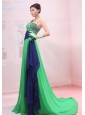 Can not decide wear which one to attend the special day? Get this gorgeous two color-tone dress for your prom, formal evening and the celebrity. It features the beaded straps ruching bodice, which is heavily embellished with dazzling beadworks. Romantic fabric forming a handkerchief on one side falling down to the floor. The floor-length skirt is smooth and elegant. The stunning skirt is complete with a sweep train. There is also a similar style for you to choose.