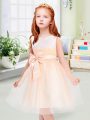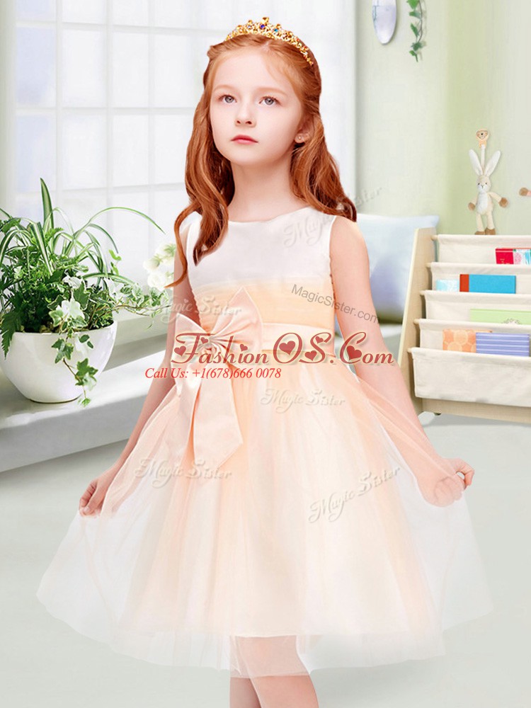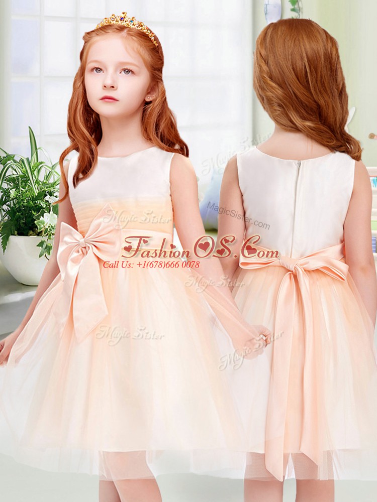 Bowknot Flower Girl Dress Peach Zipper Sleeveless Knee Length