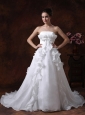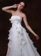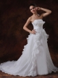 Bowknot Strapless Organza Court Train Ruffles Wedding Dress Court Train