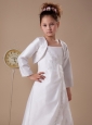 The flower girl dress will form you a lovely, active and beautiful little princess. This dress has a square neckline with straps and fitted bodice covered with delicate embroideries which sets a sophisticated tone in this flower girl dress. The tiered floor length skirt creates a fuller and more dramatic look. A cute bowknot on waist and nice embroideries scattered in skirt make this dress more charming. Zipper up back help you secure the dress in place and a matching jacket can keep warm. A beautiful dress designed in a very princess-like way.