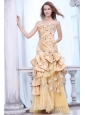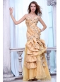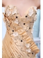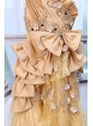 Bowknot Unique Sweetheart Gold Prom Dress with Beading and Flowers