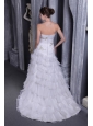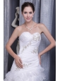 You will look like an angle in this gorgeous wedding dress! This strapless dress featrues a sweetheart neckline with fitted bodice. Cross over ruches accent your waistline, sparkly appliques scattered through out the upper part highlights your bodice. The layered sweep train completes the look. This dress will help you to make your dreams come true! Do not miss it!