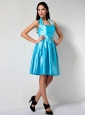 Brand New Aqua Blue A-line Halter Bridesmaid Dress Knee-length Taffeta