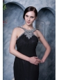 This amazing modest black evening gown from Fashionos has a glamorous celebrity style with dramatic touches including dazzling beadwork on the halter neck bodice. A long and elegant attached train that cascades to the floor. A flattering long black prom dress that showcases your beautiful back with shining straps and a low cut. It is perfect for any formal occassion.